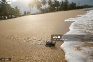 Le pays est également le premier site de nidification mondial pour les tortues luths, une espèce menacée selon l’Union internationale pour la conservation de la nature (UICN). (Photo de Nao Mukadi / AFP)