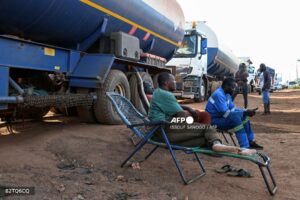 “Si les camions sโarrรชtent, c’est tout un pays qui s’รฉteint”, explique-t-il, entre deux bouchรฉes de riz nappรฉ de sauce arachide.