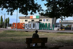 “Si on meurt, c’est pour la bonne cause”, dit d’un air grave Mamadou Diallo, 55 ans, s’offrant un moment de rรฉpit sur un parking ร Niakaramandougou, ร cinq heures de la frontiรจre.