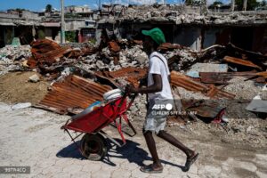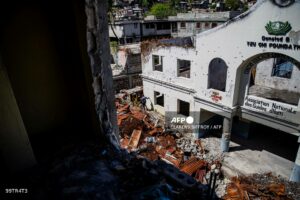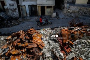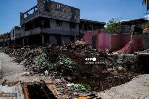 Debris and rubble are piled along the side of the road, allowing passage, around houses destroyed by armed gangs in 2024 in the Solino neighborhood of Port-au-Prince, Haiti, on March 3, 2026. Haiti’s presidential transitional council, which has run the impoverished Caribbean nation for nearly two years, on February 7, 2026, handed power to US-backed Prime Minister Alix Didier Fils-Aime, after failing to rein in rampant gang violence. Rubio said in February he was upbeat about progress in setting up a new UN-blessed force to suppress Haiti’s powerful gangs and voiced hope that the country will finally hold elections this year for the first time in a decade. (Photo by Clarens SIFFROY / AFP)