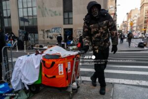 NEW YORK, NEW YORK – 1ER DรCEMBRE : Des vendeurs ambulants, dont beaucoup sont rรฉcemment arrivรฉs d’Afrique de l’Ouest, vendent des sacs, des montres et des bijoux le long de Canal Street, le 1er dรฉcembre 2025, ร New York. Ces vendeurs sont rรฉcemment devenus la cible de la police new-yorkaise et des services de l’immigration. Une tentative de raid par les services de l’immigration samedi a รฉtรฉ dรฉjouรฉe aprรจs que des dizaines de manifestants se sont rassemblรฉs pour bloquer les fourgons transportant les agents, qui semblaient vouloir mener un raid contre les vendeurs. Spencer Platt/Getty Images/AFP