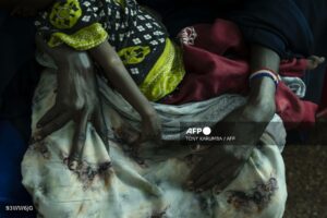 Une mรจre assise avec son enfant dans une salle rรฉservรฉe aux enfants souffrant de malnutrition sรฉvรจre ร  l’hรดpital de rรฉfรฉrence du sous-comtรฉ de Banissa, ร  Banissa, le 20 janvier 2026. Dans le nord-est du Kenya, frappรฉ par la sรฉcheresse, les villageois ont รฉtรฉ contraints de traรฎner leurs animaux morts dans des champs รฉloignรฉs pour les brรปler afin d’รฉloigner de leurs maisons l’odeur de la mort et les hyรจnes charognardes.(Photo de Tony KARUMBA / AFP)