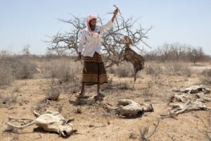Celui-ci, qui a perdu 170 chรจvres, a tentรฉ de “fuir ร  la recherche d’endroits meilleurs, mais sans succรจs”. “Nous avons soif”, soupire-t-il, avant de dรฉsigner le champ oรน gisent les carcasses de ses animaux.