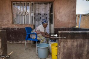 Hortance Kiluba hand wash clotes at home in the Kamitete district of Lubumbashi on November 24, 2025. (Photo by Glody MURHABAZI / AFP)
