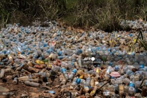 A general view of a polluted field in the Kamitete district of Lubumbashi on November 24, 2025. (Photo by Glody MURHABAZI / AFP)