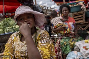 Women sells their goods at a market in Lubumbashi on November 24, 2025. (Photo by Glody MURHABAZI / AFP)